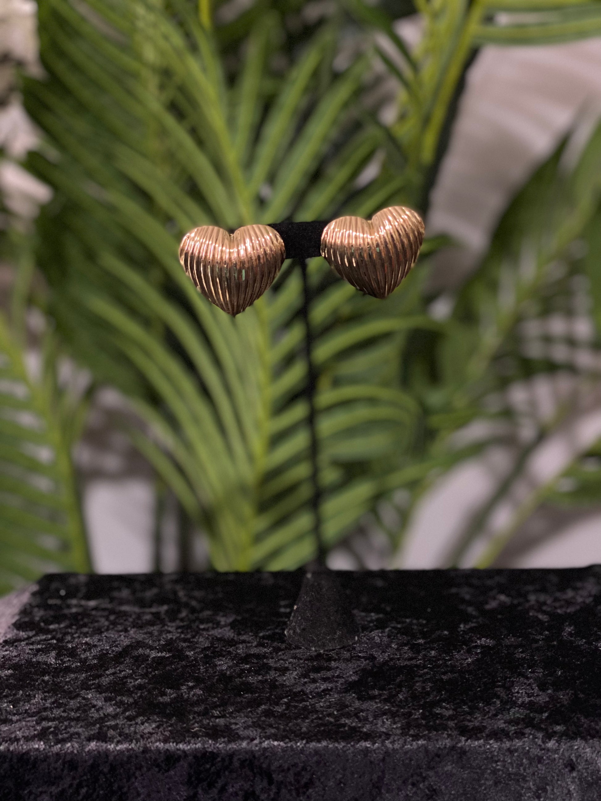 These ribbed gold or silver heart stud earrings add texture and warmth to a classic silhouette. The softly contoured design gives a vintage-inspired feel while keeping things modern and wearable. Perfect for everyday romance or layering with other gold or silver accessories.